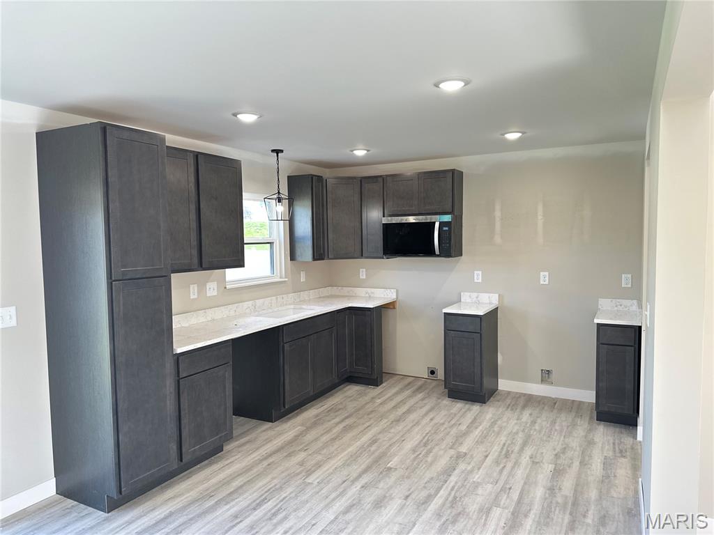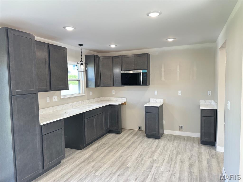 A spacious 1486sqft, 3bed x 2.5 bth, 2-Story Park Place home carries a modern flare inside & out. A great exterior look from the level front, the classy full brick gable side, a fully insulated/drywalled 2 car garage with white door and glass windows, to the beautiful color pattern of siding and white accents, wide yard with plenty of room for that fenced backyard, a very nice covered front porch, stylish exterior lighting accents, a deck, sod yard & more. Inside, you will find a great space to call home with a large living room, a nice kitchen with abundant white cabinets with crown, Granite counters & a dining room, a blend of LVP & carpeted floors throughout. The main floor laundry/pantry room is very convenient. The primary suite includes a tray ceiling, a 4'x9' walk-in closet w/ wire rack shelving, a full bath with a window & a gorgeous vanity. The 2nd & 3rd beds well sized having nice closets. Features a dual HVAC system & an awesome full walk-out basement. ELS HOMES - LOCAL BUILDER - AT ITS FINEST!