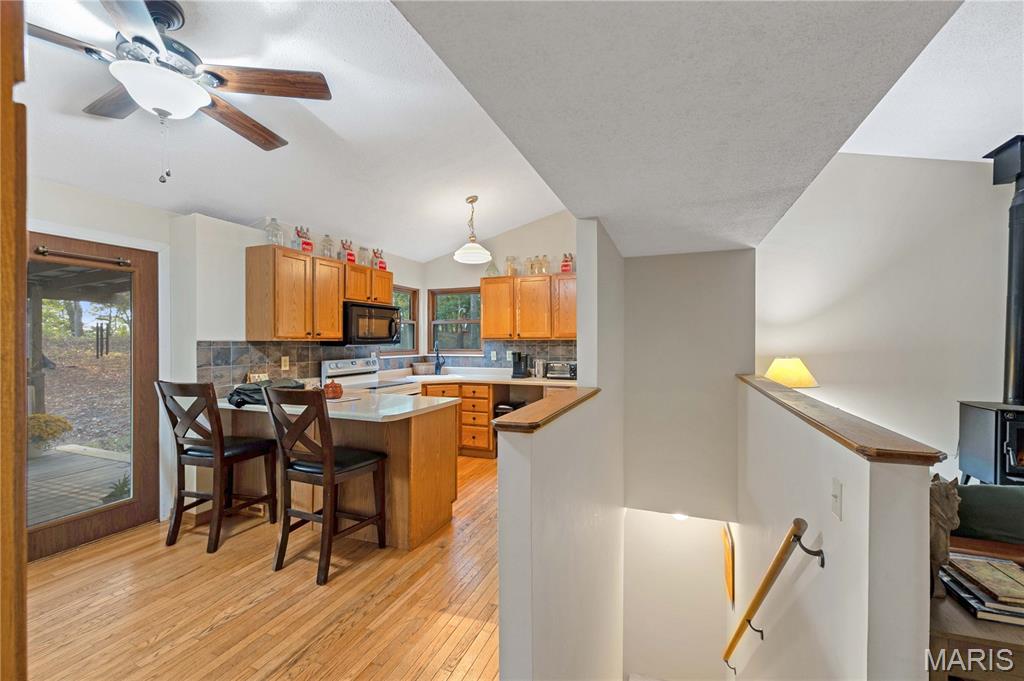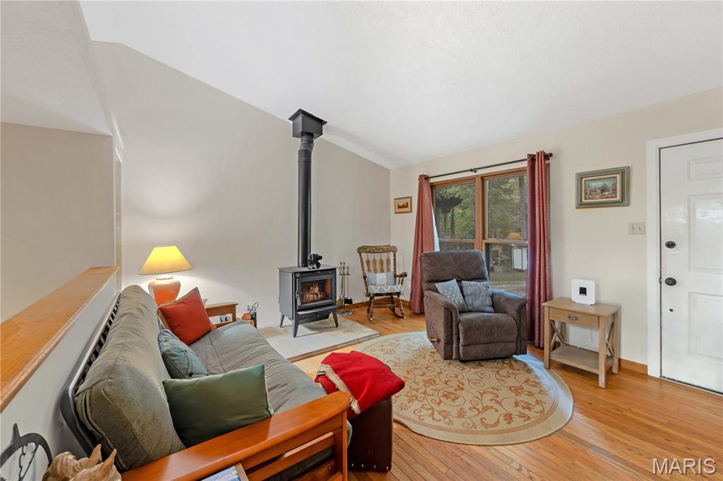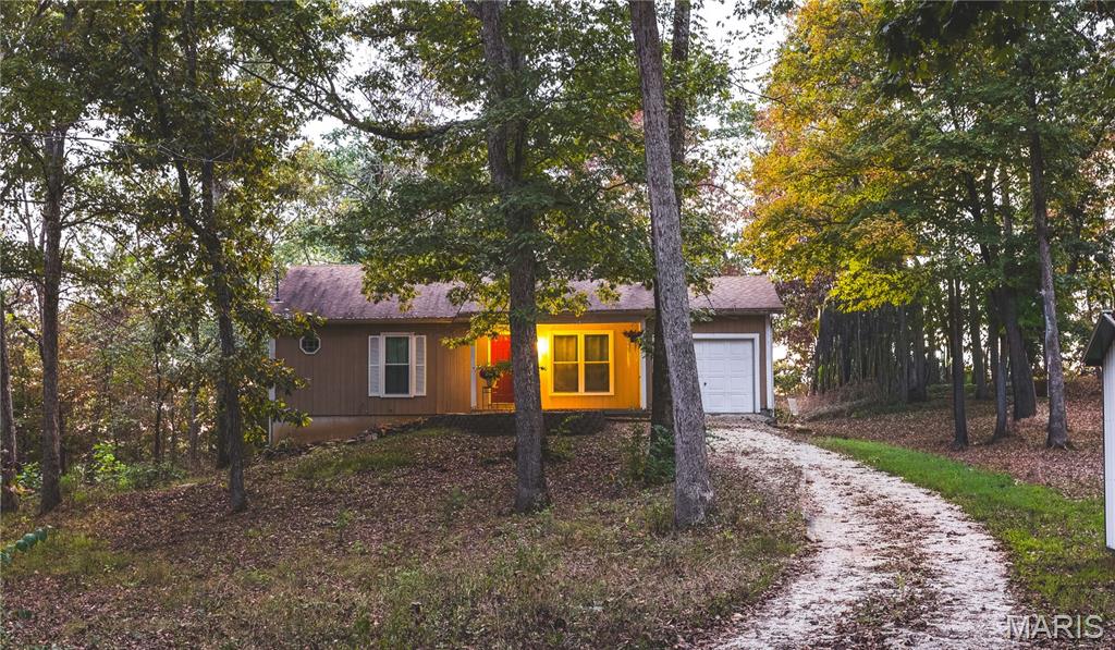 Incredible bluff-top views overlooking the Bourbeuse River! This 2.5-acre property sits over 100 feet above the river, offering stunning sunsets from the west-facing covered back porch. Located just 10 minutes from Union at the end of a quiet private road, this home features a cozy wood-burning stove, attached garage, and partially finished walkout basement with room to add a bedroom and full bath. Recent updates include A/C, furnace, septic tank and drain field, water heater, and detached shed. Also includes a chicken coop for that perfect touch of country living. A peaceful, scenic retreat with modern comforts and unmatched views!